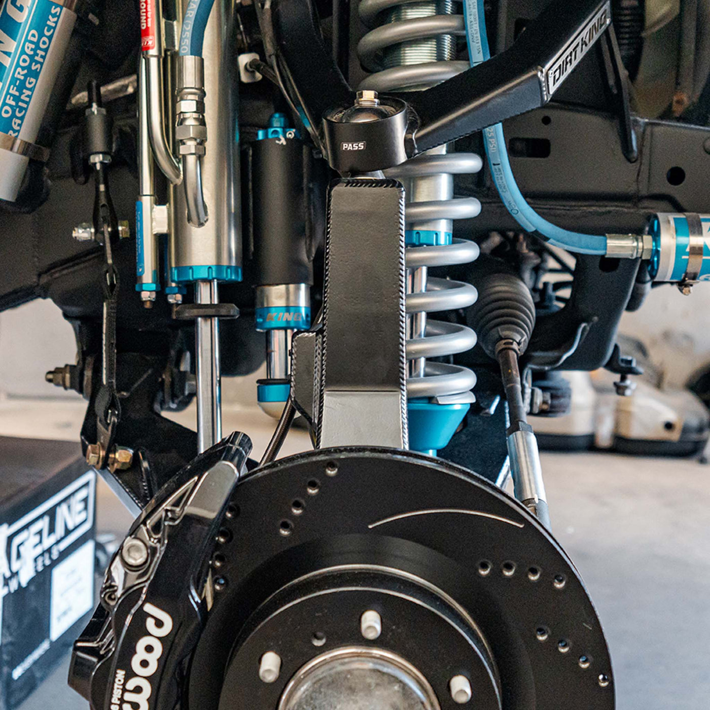 Introducing the Dirt King Performance Spindles, engineered to withstand extreme abuse! These fabricated spindles feature an innovative one-piece snout block with integrated brake caliper tabs, all precision machined from a single block of steel for unmatched strength and reliability. Designed to seamlessly integrate with our long-travel kits, performance lower control arms, and OEM lower control arms, these spindles maintain factory geometry while significantly enhancing durability.