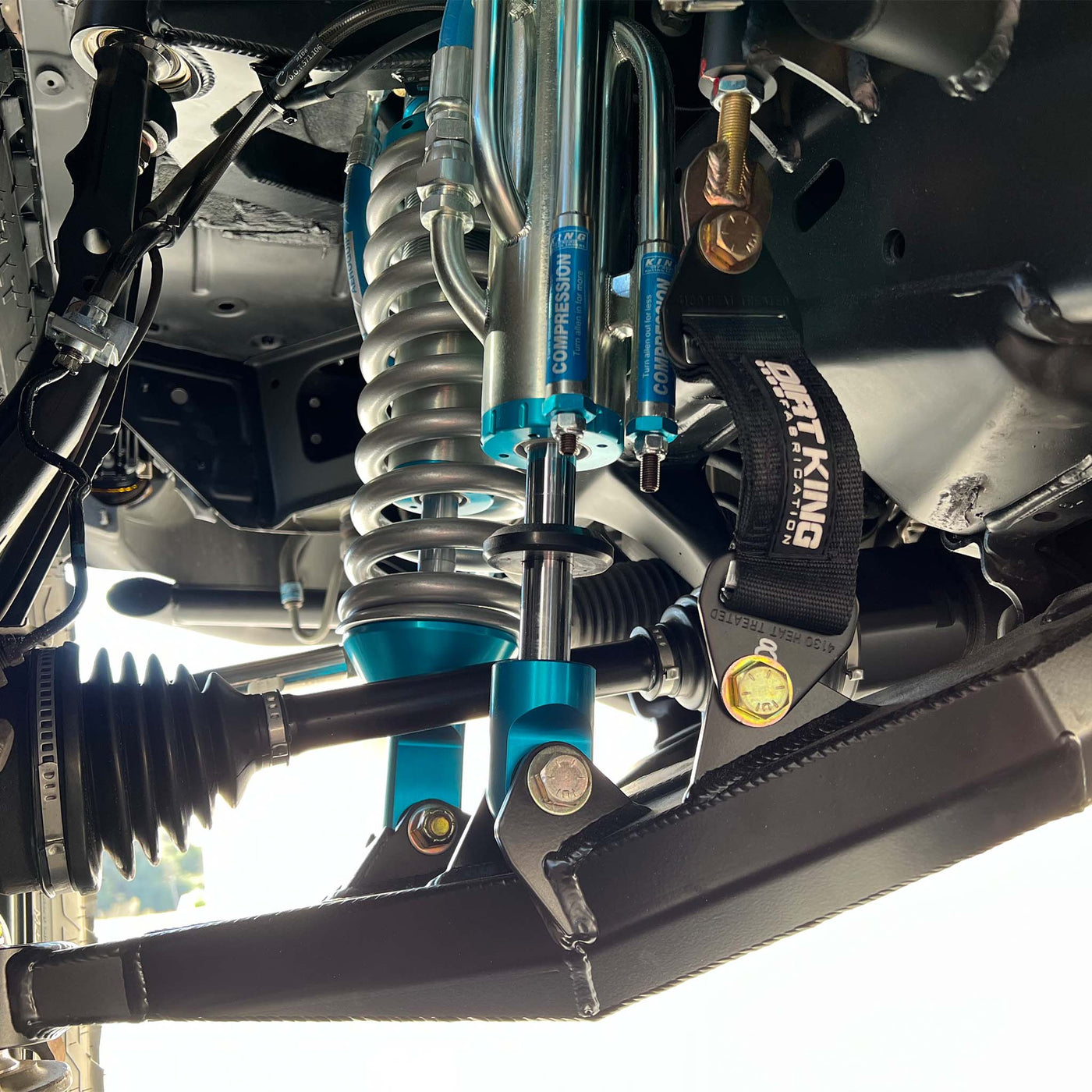 All products sold or manufactured by Dirt King are intended for off-road use only. Our products are strictly engineered and tested and are not to be modified from their original design in any way. Welding should always be done at a qualified and certified facility only. Customer assumes all liability in assuring that parts are installed correctly, maintained, and not modified or altered in any way. Dirt King is not responsible or liable for any accidents, injuries, or deaths that may occur from the use of any products offered. Suspension modifications may change the dynamics and stability characteristics of the vehicle. Ensuring prompt wheel alignment and ADAS recalibration after suspension modifications is critical and the sole responsibility of the customer.
