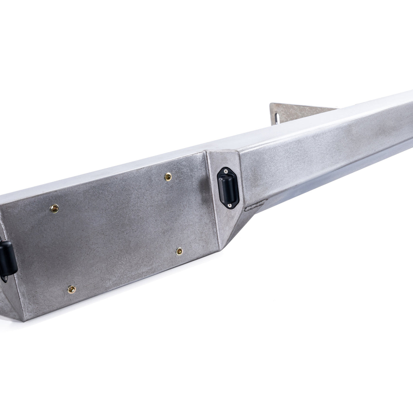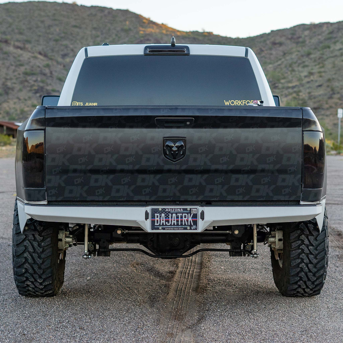 The Dirt King plate rear bumper increases ground clearance and has a great appearance. The bumper works with factory bedsides or fiberglass bedsides. Once installed the bedsides will need to be cut at an angle to match the bumper's profile.