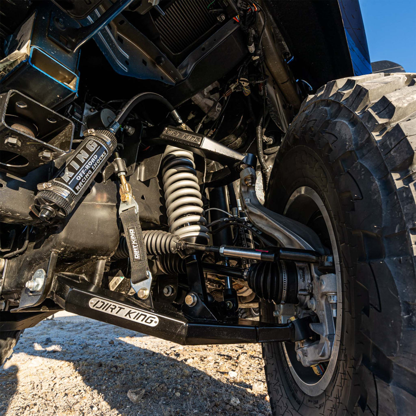 All products sold or manufactured by Dirt King are intended for off-road use only. Our products are strictly engineered and tested and are not to be modified from their original design in any way. Welding should always be done at a qualified and certified facility only. Customer assumes all liability in assuring that parts are installed correctly, maintained, and not modified or altered in any way. Dirt King is not responsible or liable for any accidents, injuries, or deaths that may occur from the use of any products offered. Suspension modifications may change the dynamics and stability characteristics of the vehicle. Ensuring prompt wheel alignment and ADAS recalibration after suspension modifications is critical and the sole responsibility of the customer.