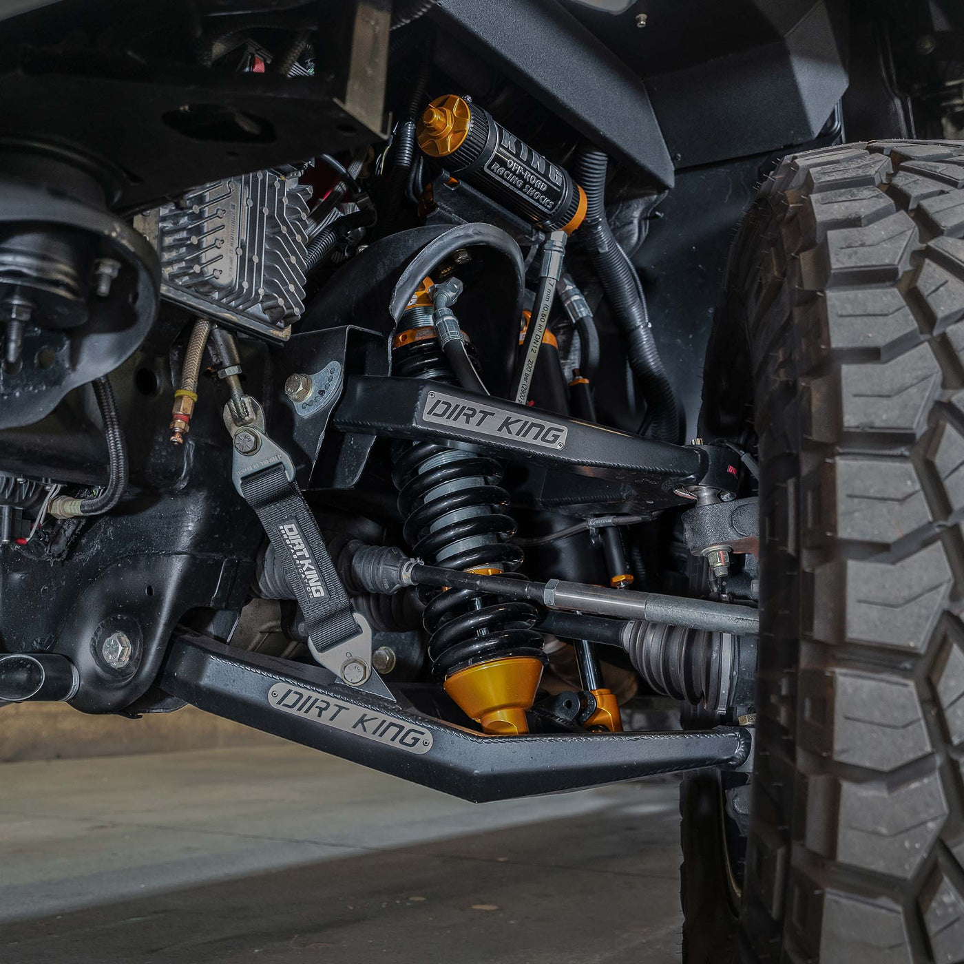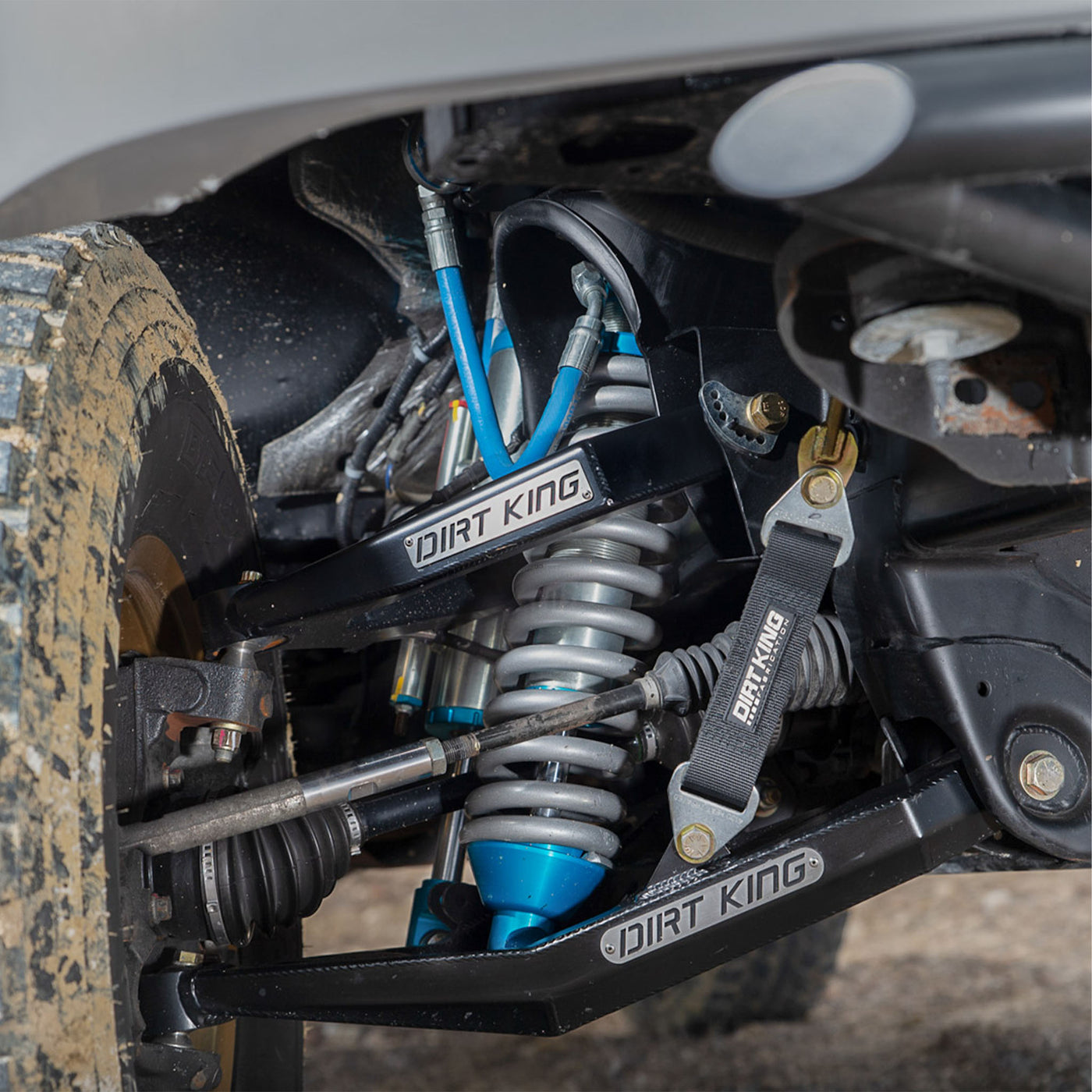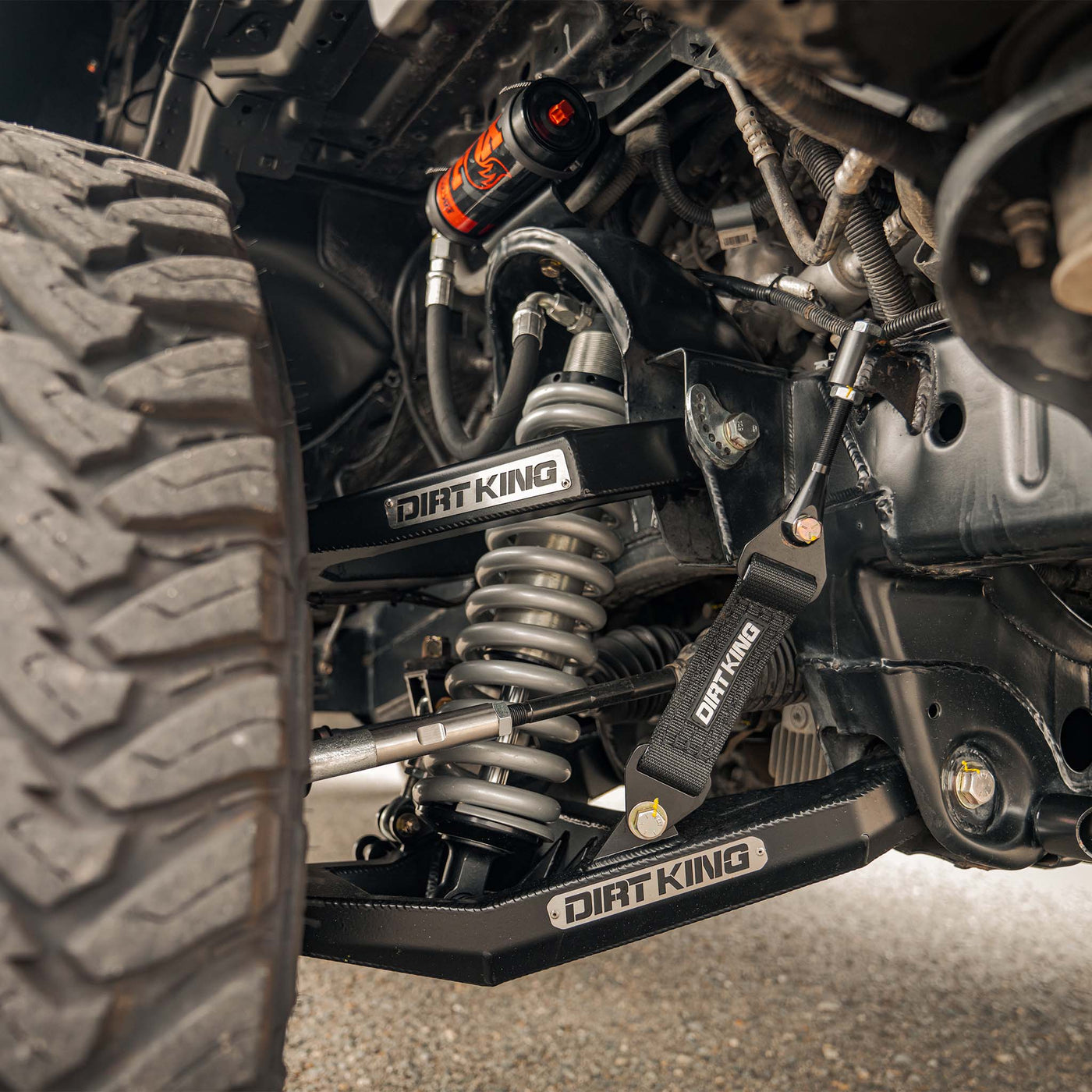 All products sold or manufactured by Dirt King are intended for off-road use only. Our products are strictly engineered and tested and are not to be modified from their original design in any way. Welding should always be done at a qualified and certified facility only. Customer assumes all liability in assuring that parts are installed correctly, maintained, and not modified or altered in any way. Dirt King is not responsible or liable for any accidents, injuries, or deaths that may occur from the use of any products offered. Suspension modifications may change the dynamics and stability characteristics of the vehicle. Ensuring prompt wheel alignment and ADAS recalibration after suspension modifications is critical and the sole responsibility of the customer.