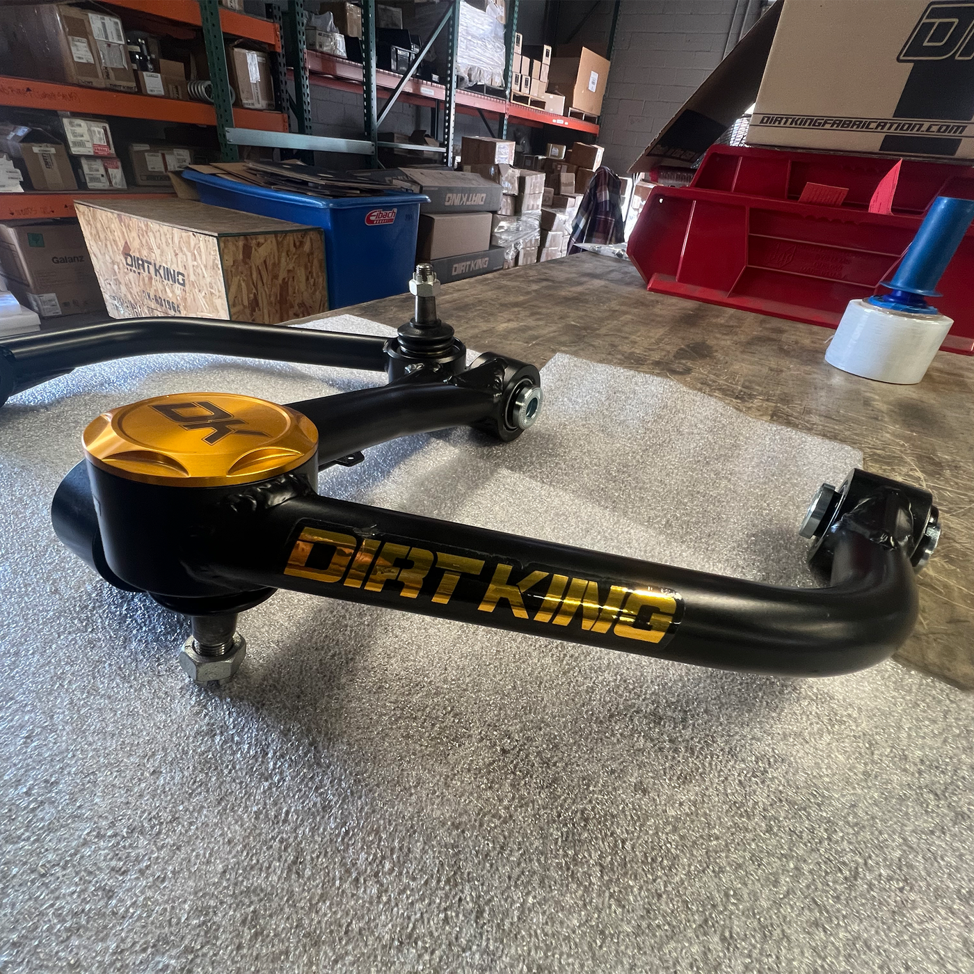 All products sold or manufactured by Dirt King are intended for off-road use only. Our products are strictly engineered and tested and are not to be modified from their original design in any way. Welding should always be done at a qualified and certified facility only. Customer assumes all liability in assuring that parts are installed correctly, maintained, and not modified or altered in any way. Dirt King is not responsible or liable for any accidents, injuries, or deaths that may occur from the use of any products offered. Suspension modifications may change the dynamics and stability characteristics of the vehicle. Ensuring prompt wheel alignment and ADAS recalibration after suspension modifications is critical and the sole responsibility of the customer.