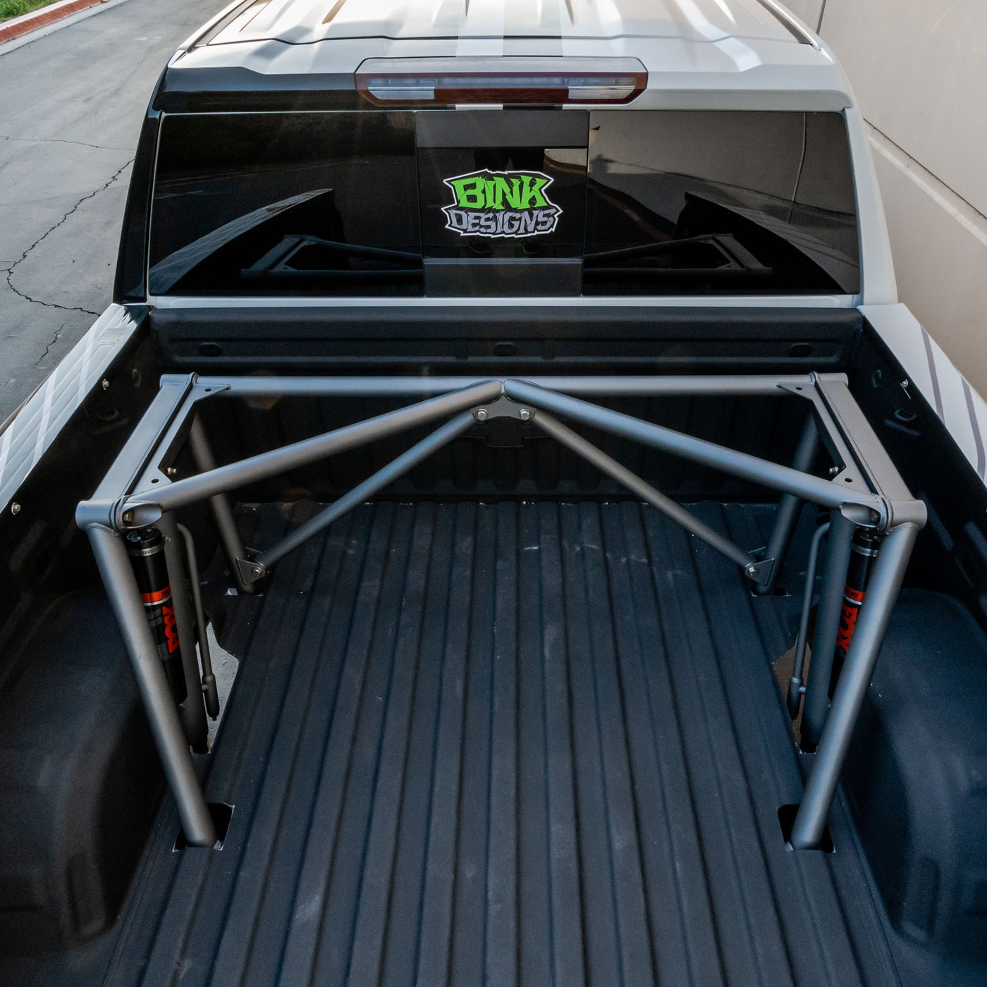 The Dirt King Prefab Bed Cage was developed after building numerous custom bed cages. With that experience we've perfected the design for maximum travel and easy installation. The bed cage takes up minimal bed space while not compromising strength. Accessory mounting holes are incorporated into the center section of the cage to mount dust lights and flag whips. The entire kit bolts together and mounts to the frame after four brackets are welded on. It can be installed with leaf over or leaf under spring packs. This suspension system is superior to a cantilever suspension system for two major reasons. The first reason is the shock mounts on the bed cage are outside the frame rails vs inside the frame rails for increased stability. The second reason is the shocks are mounted vertically with a motion ratio close to 1:1 allowing for proper dampening through the suspension travel. The cantilever suspension has a higher motion ratio resulting in smaller shocks, difficult to valve shocks properly, and heating up the shocks faster since they have less fluid. The Dirt King Prefab Bed Cage is your best choice to increase rear suspension performance while not breaking the bank.