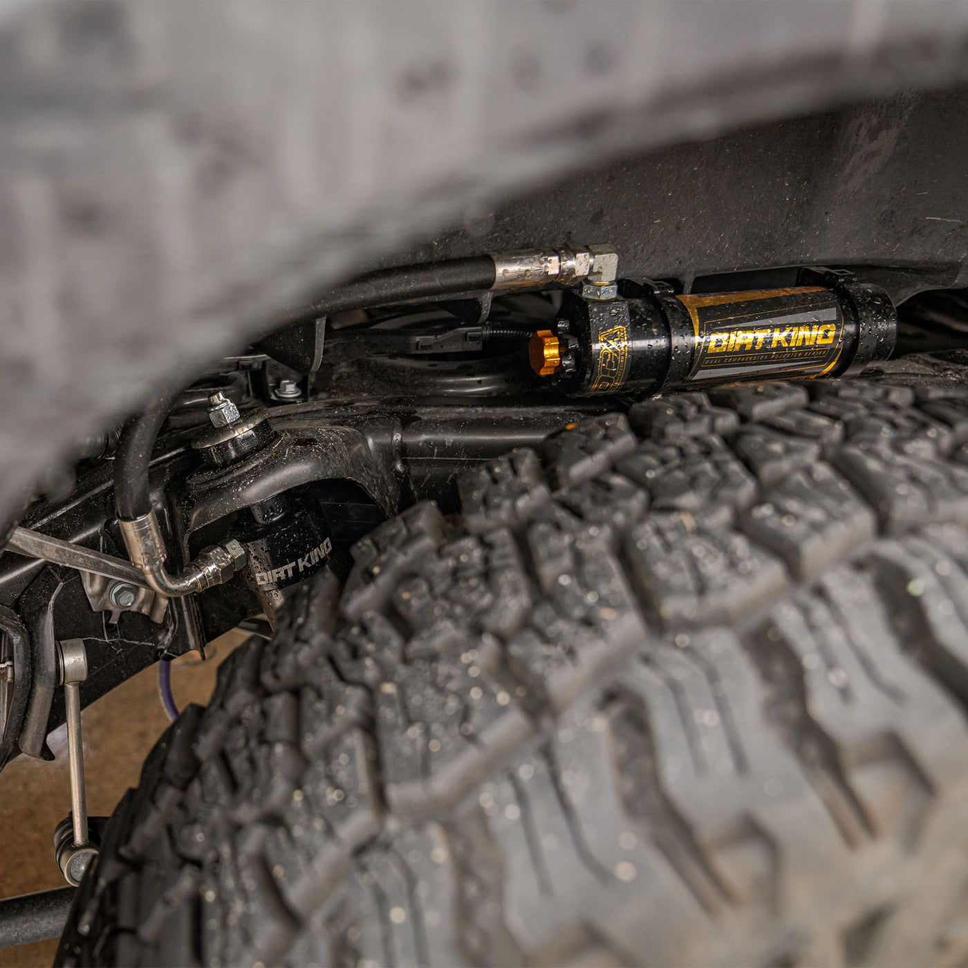 The Dirt King 2.5" Dual Compression Adjuster (DCA) Series rear shocks are engineered to complement our 2.5" DCA front coilovers, forming a balanced suspension system for your Toyota Tacoma. Both front and rear shocks were developed together to ensure that damping characteristics are harmonized, offering consistent handling and control across all terrains.