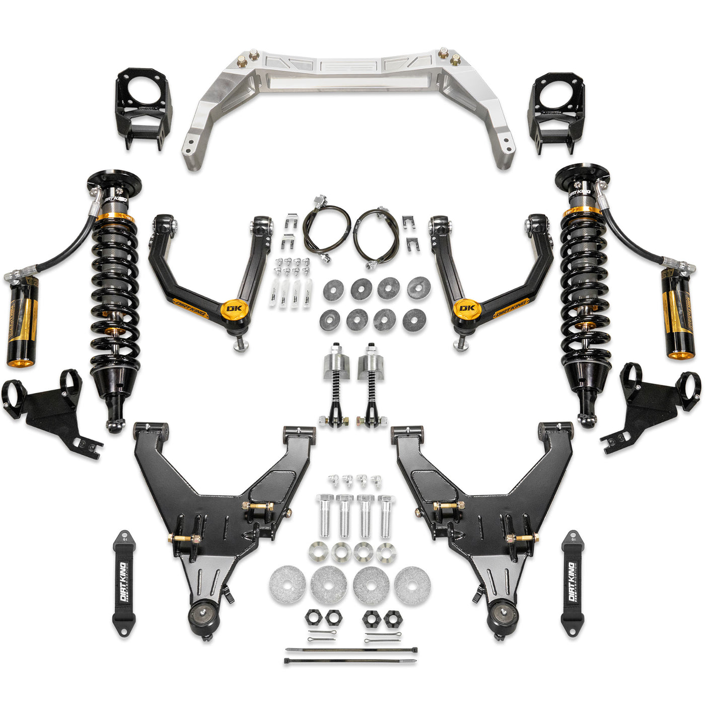 Take your 2024+ Tacoma to the next level with the Dirt King Long Travel Kit. Engineered for superior off-road performance while still providing everyday on-road comfort. Our most advanced system yet—featuring billet upper control arms, optional billet bolt-on cross brace, and Dirt King LT shocks for a complete, next-level package.