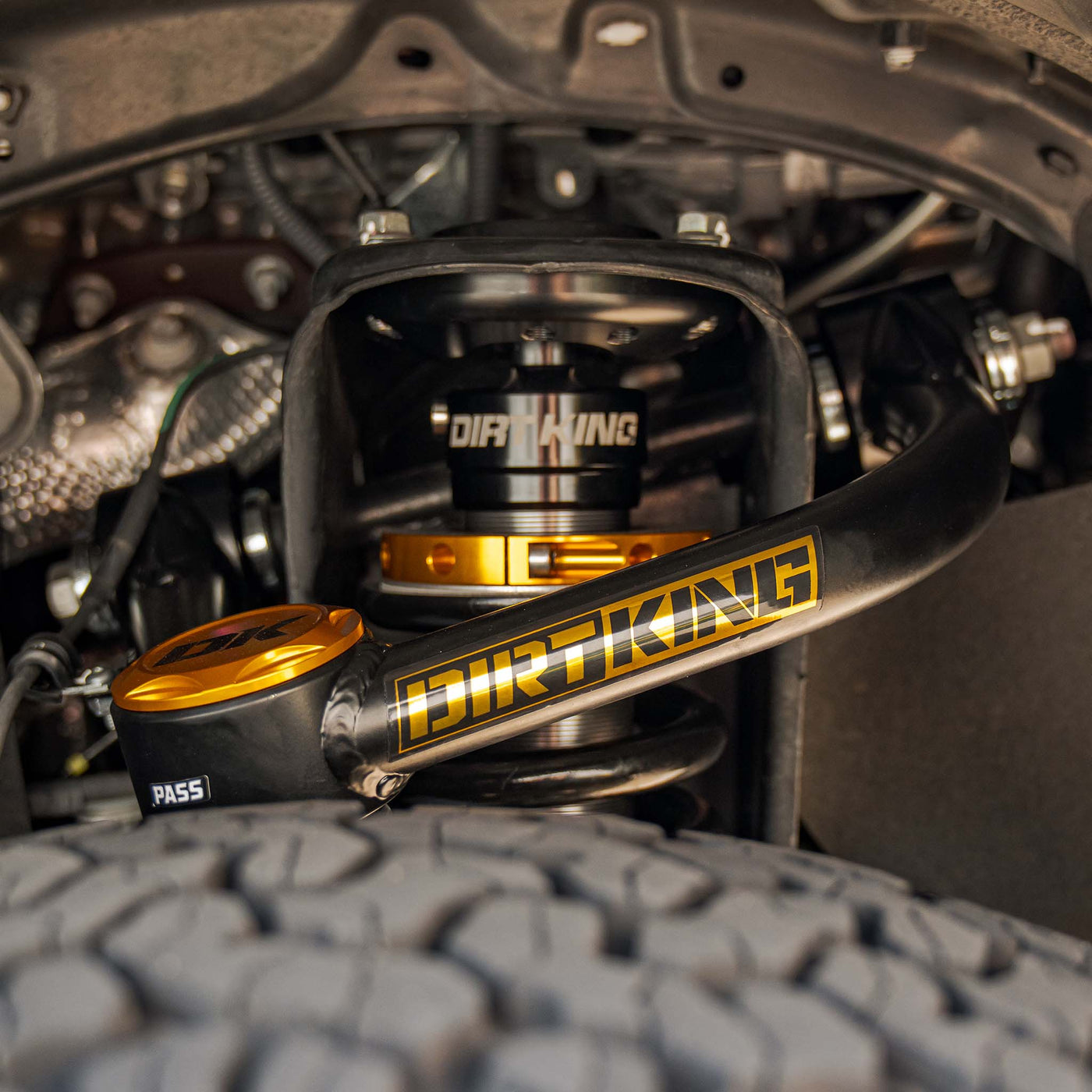 All products sold or manufactured by Dirt King are intended for off-road use only. Our products are strictly engineered and tested and are not to be modified from their original design in any way. Welding should always be done at a qualified and certified facility only. Customer assumes all liability in assuring that parts are installed correctly, maintained, and not modified or altered in any way. Dirt King is not responsible or liable for any accidents, injuries, or deaths that may occur from the use of any products offered. Suspension modifications may change the dynamics and stability characteristics of the vehicle. Ensuring prompt wheel alignment and ADAS recalibration after suspension modifications is critical and the sole responsibility of the customer.