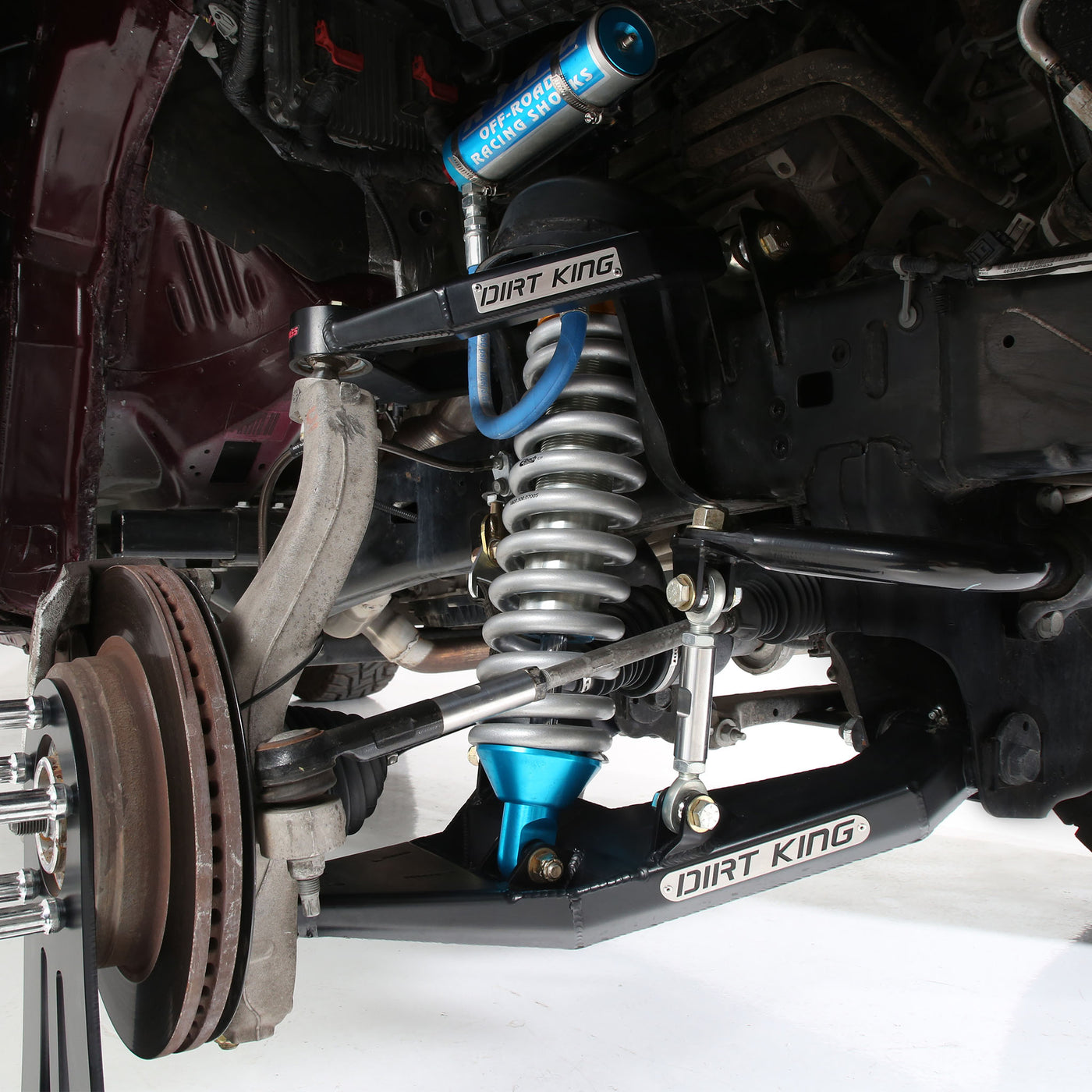 All products sold or manufactured by Dirt King are intended for off-road use only. Our products are strictly engineered and tested and are not to be modified from their original design in any way. Welding should always be done at a qualified and certified facility only. Customer assumes all liability in assuring that parts are installed correctly, maintained, and not modified or altered in any way. Dirt King is not responsible or liable for any accidents, injuries, or deaths that may occur from the use of any products offered. Suspension modifications may change the dynamics and stability characteristics of the vehicle. Ensuring prompt wheel alignment and ADAS recalibration after suspension modifications is critical and the sole responsibility of the customer.